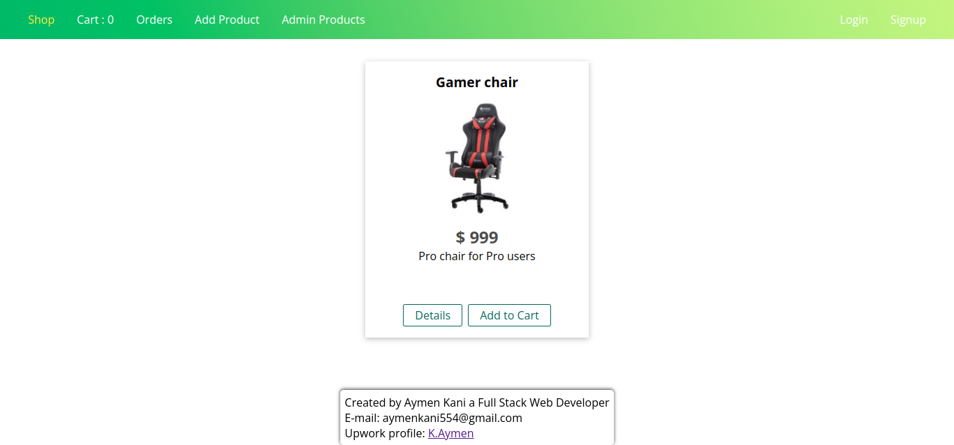 This is a shopping app that uses 'Stripe' as a payment method, The user can add, delete, edit products as well as adding products to the card and order them after going through the payment process. Login is required in order to use the app features. User can Singup, Login and recover his password. Also The app will notify The User if any product was added using 'Socket.io'